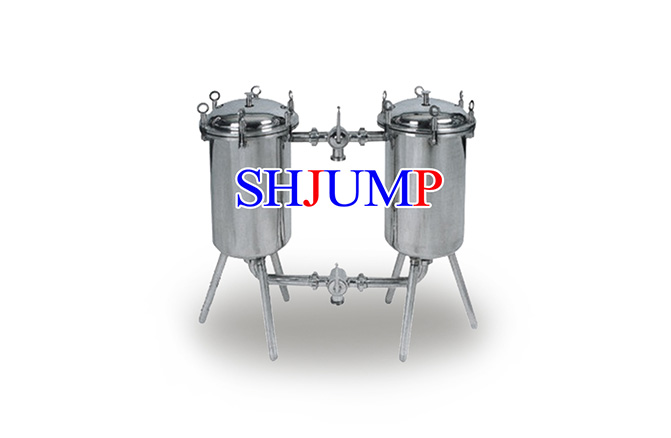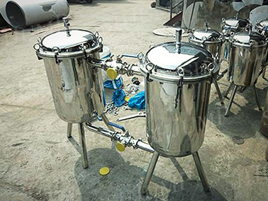 The inner and outer surface of the double filter is polished, and the filter cylinder is equipped with stainless steel filter screen and screen support basket; The top is equipped with a vent valve for discharging the air in the filter when filtering. The connection between the upper cover and the filter cylinder adopts quick-opening structure, which is more convenient to clean (replace) the filter screen. Three adjustable legs can make the filter be placed on the ground smoothly. The connecting pipeline adopts live connection or clamp connection mode, and the inlet and outlet valve adopts three-way ball valve to open and close, which is pressure-resistant and temperature-resistant, flexible and convenient operation, and more sanitary without liquid leakage.