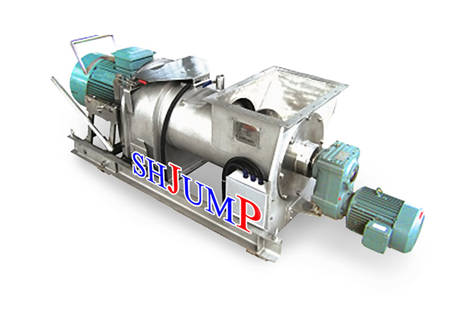 The motor drives through the belt, so that the scraper installed on the spline shaft rotates at high speed. When the broken fruit enters the machine through the feeding port, the pulp plate evenly distributes the material to the scraper and screen.  Due to the rotary action of the scraper and the existence of the lead Angle, so that the material along the cylinder to the export end of the movement, the trajectory of the movement is spiral, the material is in the process of moving between the scraper and the sieve tube by centrifugal force and be scraped, juice and meat (has become pulp) from the sieve hole through the next process into,  (double beater for linkage repeat the above process) the skin and seeds are discharged from the slag hopper, in order to achieve the purpose of automatic separation.  As long as the change of different specifications of the screen and adjust the size of the lead Angle of the scraper, different beating speed can be changed to obtain satisfactory results.