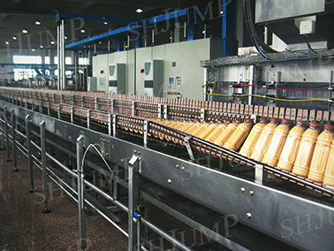 This machine is mainly used for sterilizing the gap parts of the bottle mouth and cap which cannot be contacted by high temperature materials after hot filling and sealing of tea and fruit juice drinks.  After filling and sealing the product, the machine will automatically turn over 90 to put the bottle flat, sterilize the inner wall of the bottle cap through the temperature of the material, and enter the spray cooling machine. The machine adopts imported transmission chain, stable and reliable, no damage to the bottle body, transmission speed can be stepless adjustment.