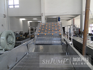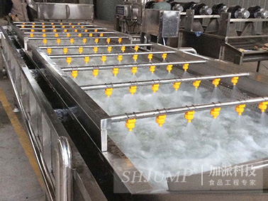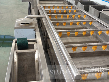 我公司生產(chǎn)的果蔬噴淋清洗機(jī)適合于各種新鮮水果、蔬菜、鹽漬菜、菌類、海產(chǎn)品。該清洗機(jī)在物料輸送過程中,增加了噴淋清洗功能,使物料在完成前道清洗后,再經(jīng)過噴淋清洗,該道工序的作用是將物料表面的臟水替換去除,提高物料的清洗效果,同時(shí),外來的清潔噴淋水在對(duì)物料進(jìn)行二次清洗后,水自動(dòng)流入水浴槽中,達(dá)到替換補(bǔ)充水浴槽內(nèi)的清洗水,保持了水浴槽內(nèi)水質(zhì)的清潔度,即提高了清洗水的利用率,又增加了清洗效果.。