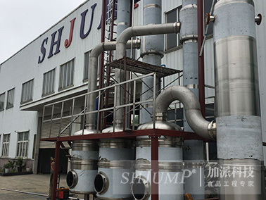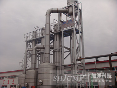 在降膜蒸發(fā)中,物料從加熱室的通道中進(jìn)料,經(jīng)過分配和成膜裝置后,均勻地分配到熱交換管中。 在重力,真空誘導(dǎo)和氣流的作用下,材料形成均勻的膜并從上向下流動(dòng)。 在流動(dòng)過程中,材料被外殼中的加熱介質(zhì)加熱和蒸發(fā)。 釋放出的蒸汽和液相將進(jìn)入蒸發(fā)器的分離室,以徹底分離蒸汽和液體。 蒸汽進(jìn)入冷凝器進(jìn)行冷凝(單次操作)或作為加熱介質(zhì)進(jìn)入蒸發(fā)器的下一級(jí),從而實(shí)現(xiàn)多級(jí)操作和分離室排出的液相。