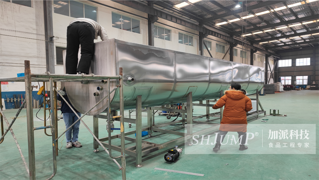 2021年年末與銀鷺集團(tuán)溝通定制,為集團(tuán)公司飲料生產(chǎn)線前處理,定制加工大型花生預(yù)煮設(shè)備。上海加派機(jī)械科技有限公司有豐富的非標(biāo)定制特種加工設(shè)備定制加工經(jīng)驗(yàn)