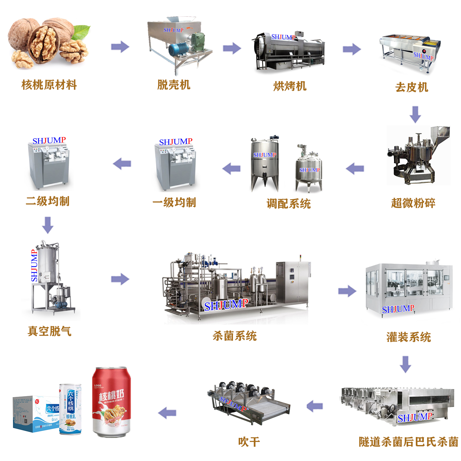核桃奶是以核桃仁、純凈水為主要原料,采用現(xiàn)代工藝加工、科學(xué)調(diào)配精制,再經(jīng)高壓殺菌或無(wú)菌包裝制得的乳狀飲料。核桃奶飲料特點(diǎn):以核桃仁、純凈水為主原料,外觀為乳白色乳液狀,口感細(xì)膩潤(rùn)滑,芳香濃郁爽口,具有特殊的核桃濃郁香味。