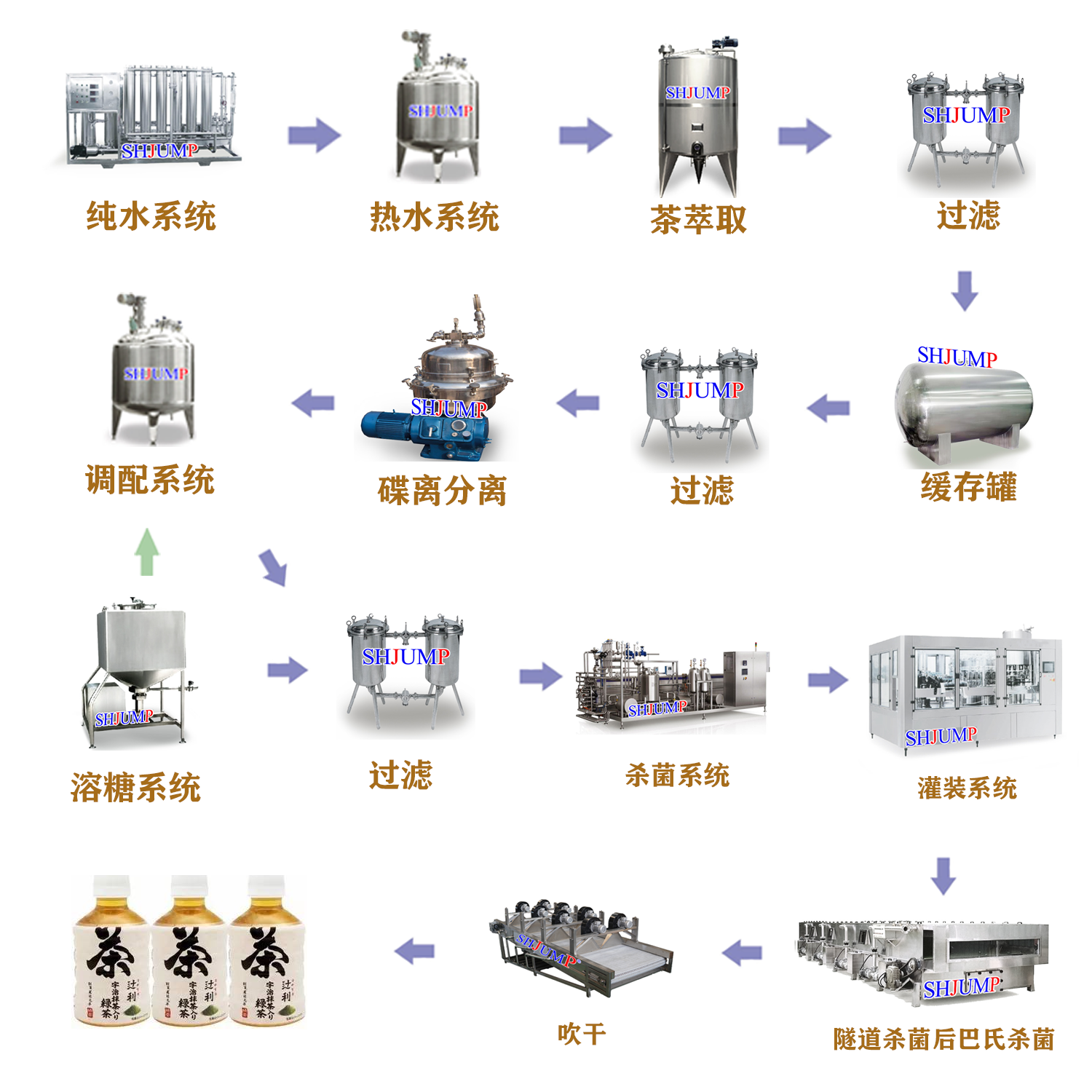 成熟的工藝,精湛的技術(shù),精致的設(shè)備,是飲料行業(yè)走向成功的必然選擇,在茶飲料方面, 上海加派機(jī)械不僅很好的解決了茶飲料容易變色和風(fēng)味損失,更加在保持良好的風(fēng)味和色澤上避免了混濁和沉淀的產(chǎn)生。