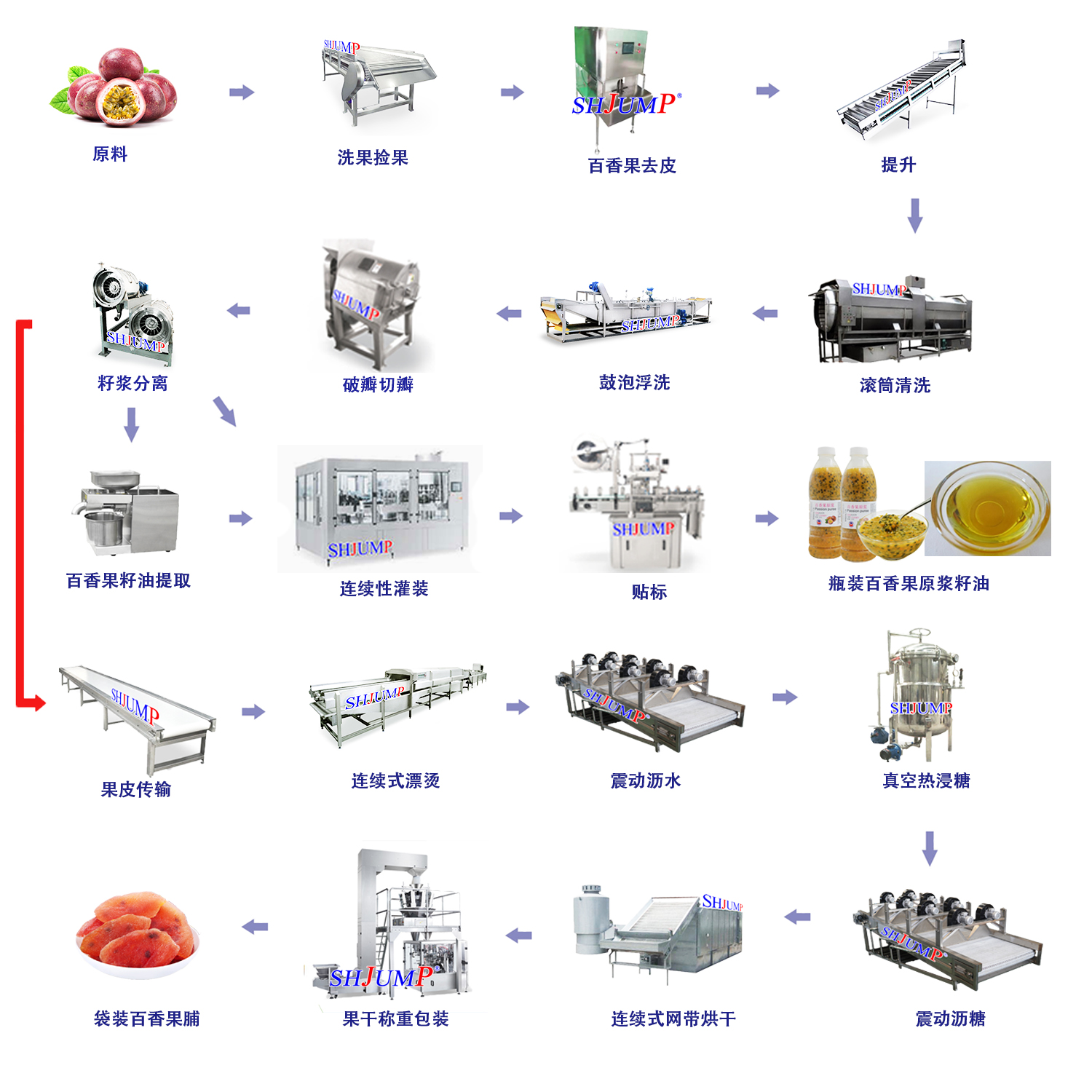 Shanghai Jiapai machinery from nearly 40 years of whole plant equipment r & D, design, manufacturing and one-stop turnkey project experience, continuous progress, the production of fruit and vegetable processing equipment best-selling domestic, exported to overseas, has built more than 300 production lines, 70% export, obtained a good reputation! The dried fruit production line of Shanghai Jiapai Machinery is mainly composed of cleaning, conveying, peeling and coiling, slicing, color protection, watering, sugar dipping, drying, packaging and other equipment. This production line has advanced design concept, high degree of automation, system and material contact part is all MADE of SUS304 stainless steel material, fully meet the requirements of food hygiene and safety.