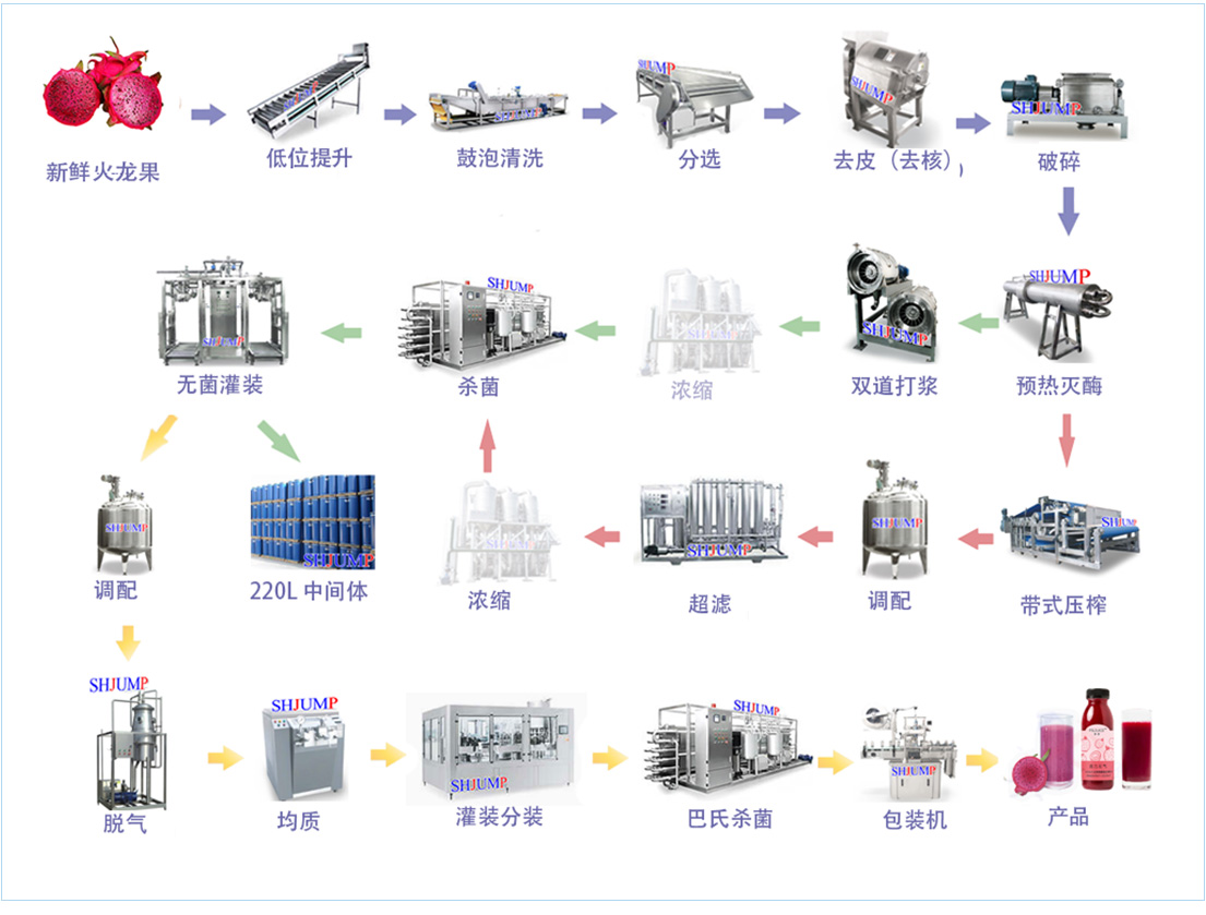 加派機械數(shù)十年來深耕果蔬深加工,加派機械的食品生產(chǎn)線售往世界多國,通過加派機械的工藝和無菌灌裝技術(shù),火龍果可加工為火龍果原漿,常溫可儲存兩年。作為現(xiàn)在市場火爆的水果種類,火龍果原漿有著豐富的應(yīng)用場景,蛋糕、奶茶、飲料、餅干、冰淇淋、嬰兒輔食等等。同時,火龍果也可以進一步加工成NFC果汁,火龍果酵素,擁有極高的附加值?! ?br />
