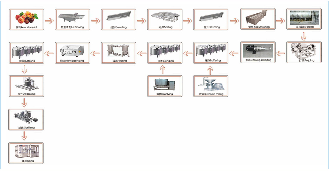 上海加派機械科技有限公司深耕食品工程項目30余載,設(shè)備售往世界多國,我司在桃杏李加工方有著豐富的經(jīng)驗。加派機械的本條生產(chǎn)線適用于杏子、李子、桃等核果類的加工,可生產(chǎn)清汁、濁汁、原漿、濃縮汁、濃縮漿、果粉、果醋等產(chǎn)品。該生產(chǎn)線主要由清洗機、提升機、紫外滅菌機、去核機、打漿機、脫氣機、均質(zhì)機、殺菌機及灌裝機等設(shè)備組成。本生產(chǎn)線設(shè)計理念先進(jìn)、自動化程度高;主體設(shè)備全部采用優(yōu)質(zhì)不銹鋼材質(zhì)制造,完全符合食品加工的衛(wèi)生要求?! ?br />