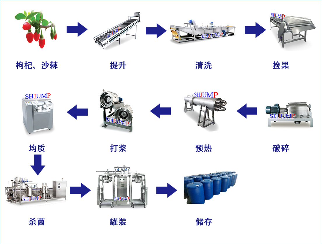 2. 處理枸杞、沙棘、可生產(chǎn)清汁、濁汁、濃縮汁、枸杞粉及枸杞酒、沙棘飲料等產(chǎn)品。