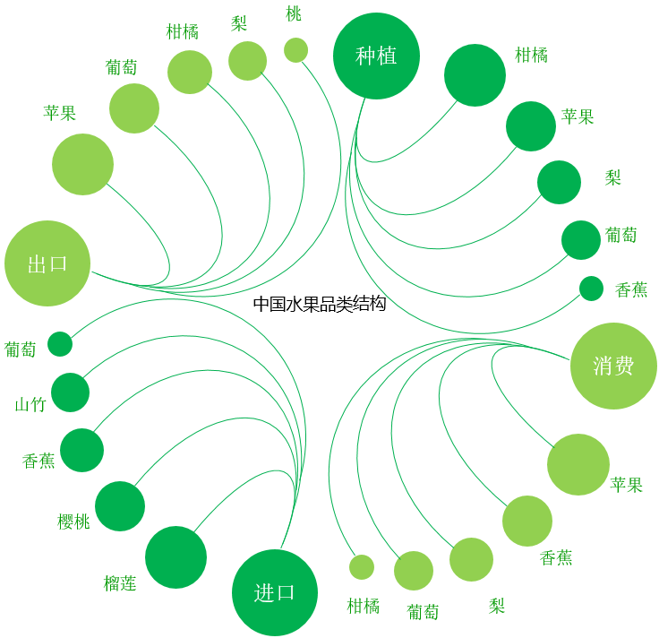 圖表1:中國水果種植、消費、進口、出口分品類結(jié)構(gòu)