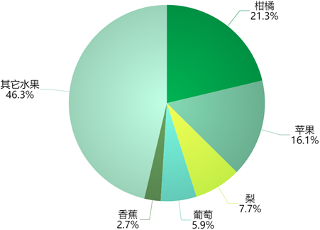 分布DISTRIBUTE品種結(jié)構(gòu):柑橘>蘋果>梨>葡萄>香蕉