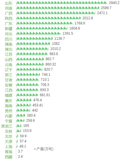 甘肅省710.1萬噸,占比約2.59%,排名全國16;