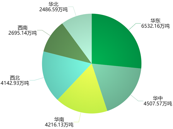 天津市57.4萬噸,占比約0.21%,排名全國28;